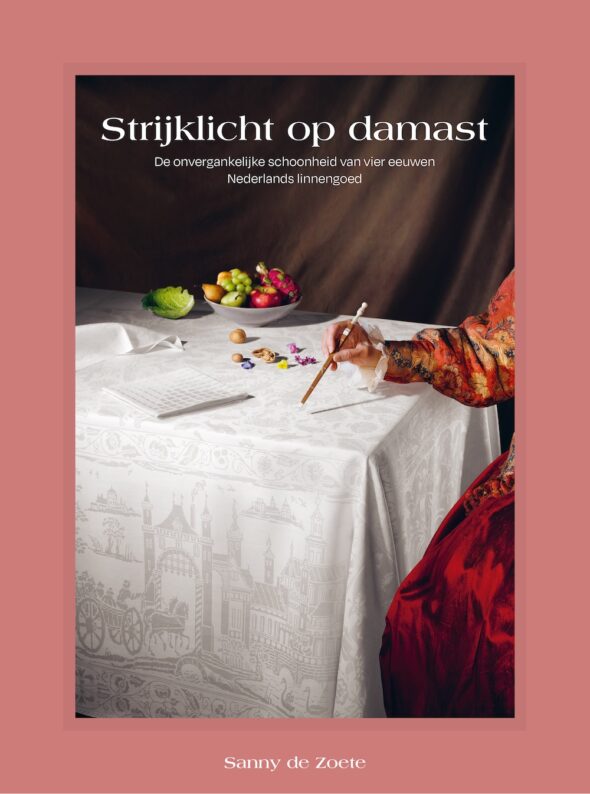 Er zijn duizenden boeken over het voedsel óp onze borden. Dit is het eerste boek over vier eeuwen tafellinnen ónder onze borden. Schuif aan tafel bij verzamelaar, kunsthistorica en producent Sanny de Zoete. De naam Sanny de Zoete staat gelijk aan ‘verleden, heden en toekomst’ van damast. Als kunsthistorica weet ze alles over het damastverleden. Als verzamelaar bewaakt ze dat verleden en stelt ze het veilig voor de toekomst. En als uniek producent van linnen damast laat ze, samen met kunstenaars en de Ierse linnenweverij, hedendaagse én toekomstige liefhebbers weer genieten van nieuw tafellinnen. In dit boek beschrijft ze meeslepend hoe de Nederlandse productie van damast in de zeventiende eeuw begon in Haarlem, hoe het linnengoed verspreid raakt in talloze huishoudens, en hoe zij op haar beurt vanuit Delft de geschiedenis voortzet. Reis met haar mee! Onderweg speur je met haar naar de cultuurschatten van vrouwen, in linnenkabinetjes van de pronkpoppenhuizen, op zolders van kastelen, in de linnenkamer van het paleis en bij particulieren thuis. Prachtige foto’s laten zien hoe de dessins, door strijklicht aangeraakt, tot leven komen. Fraaie bloemen komen voorbij, galopperende jagers, dieren in alle soorten en maten, God in een wolk, de #metoo vrouwen uit de Bijbel: Suzanna en Bathseba, oorlogsgeweld en vredesverdragen, nieuwe en oude familiewapens. Het kerklinnen gebruikt in kerken tijdens de viering van het Laatste Avondmaal krijgt zelfs een eigen hoofdstuk. Aan het eind blijft over de vraag van een kind: Wil je ook blijfe eten? Dit boek is geen dor naslagwerk. Dit boek vol smeuïge verhalen toont aan hoe rijk onze eetcultuur is. Als toetje krijgt de lezer vijf échte staaltjes linnen uit Sanny’s collectie, het oudste stukje is ruim vierhonderd jaar oud.